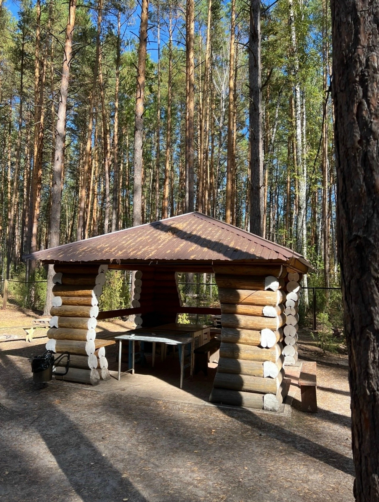 большая беседка под крышей и личный мангал для застолья на свежем воздухе