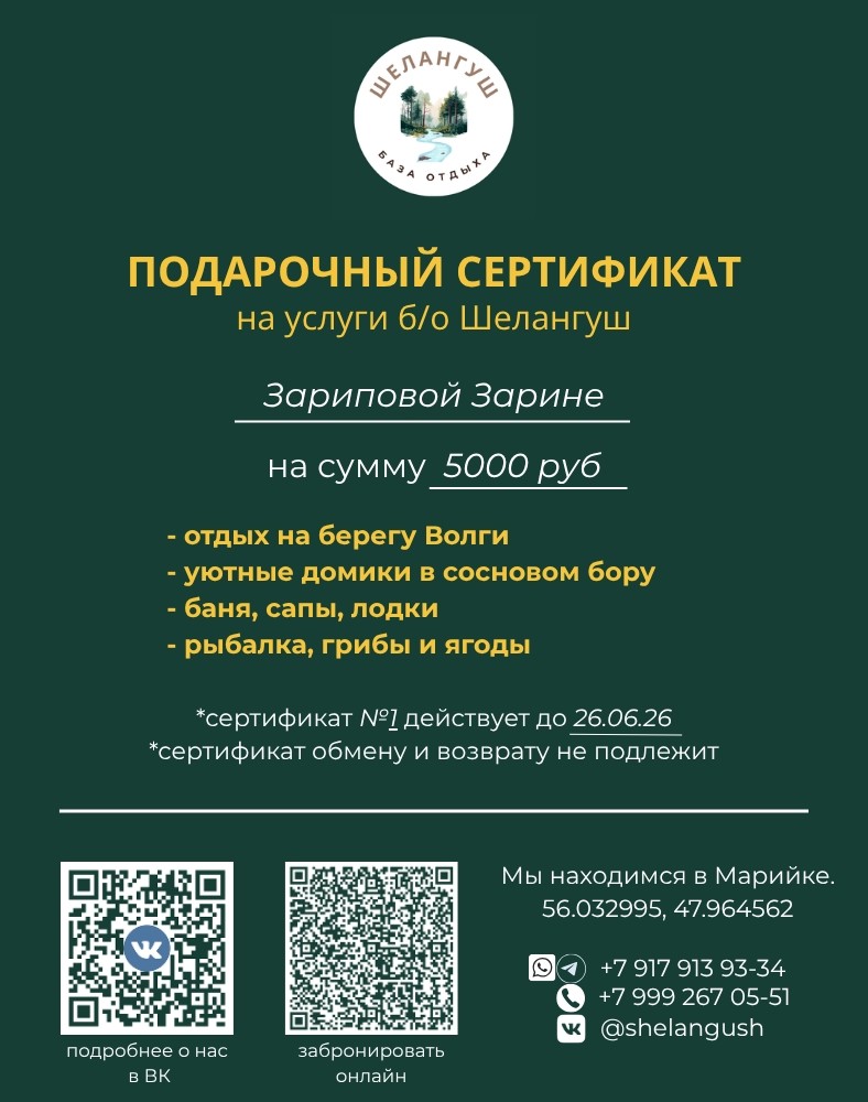 База отдыха «Шелангуш» предлагает не только спокойный семейный отдых на природе, но и разнообразные развлечения для активных людей.